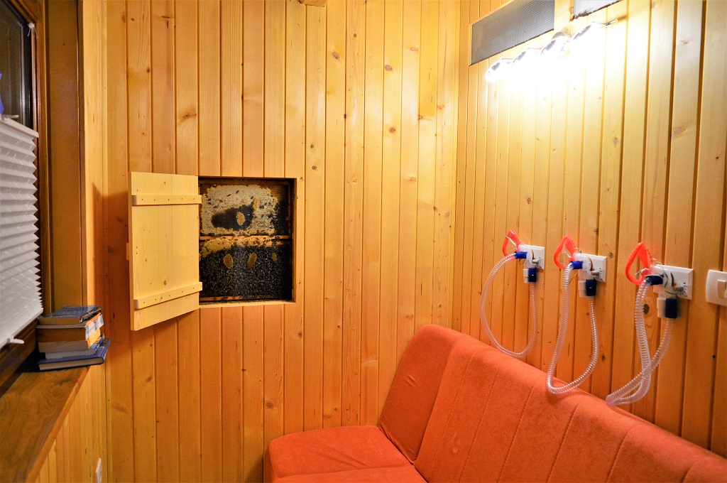 room there are also two masks for intensive inhalation of aerosol directly from the beehive for those who want more than just